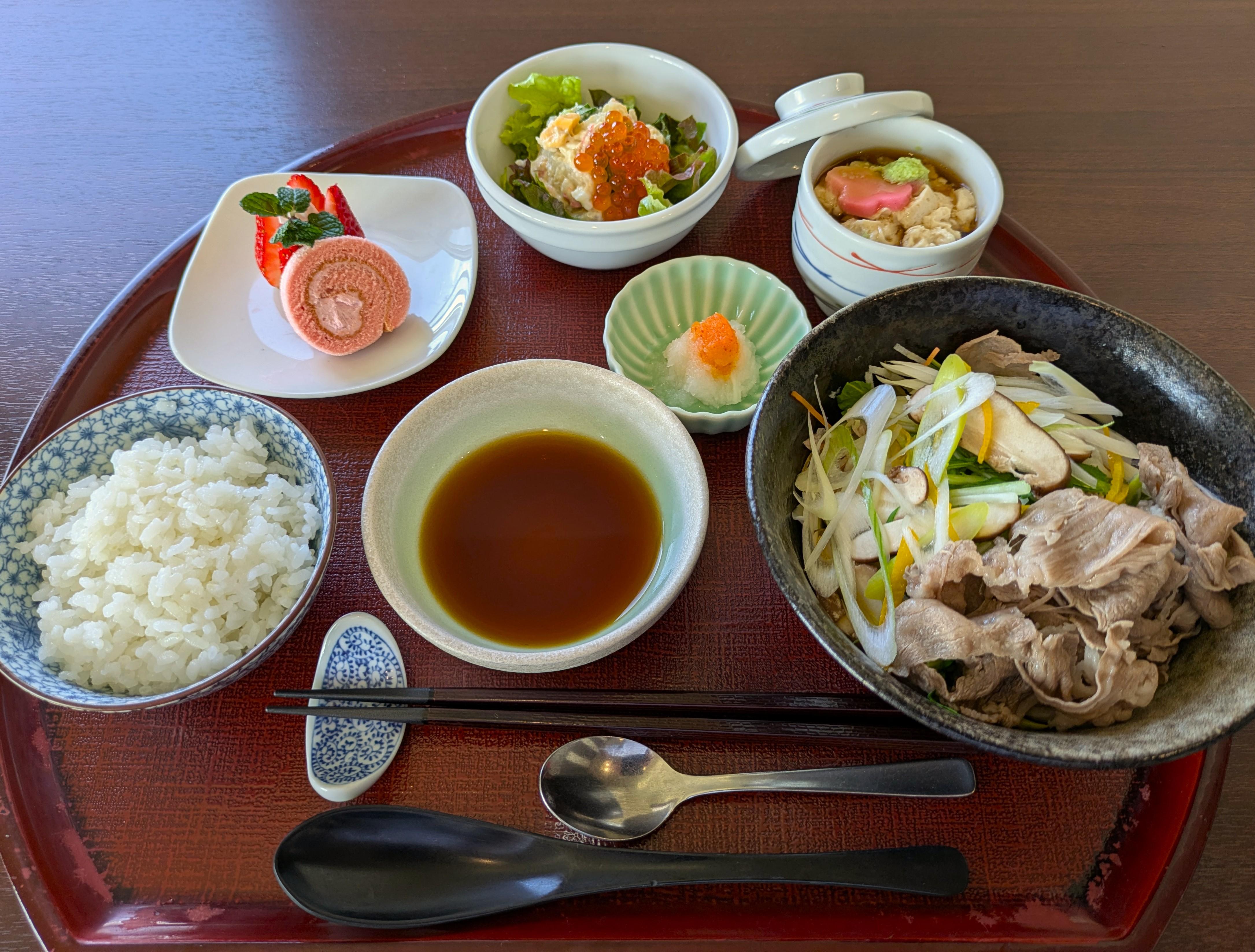 今月の特別メニューランチは「如月のおもてなし御膳」 黒毛和牛のしゃぶしゃぶは、五色の千切り...