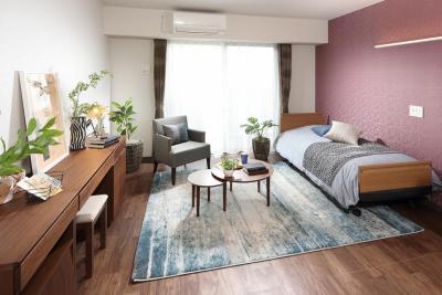 ■施設類型 【介護付きホーム】介護付有料老人ホーム(一般型特定施設入居者生活介護) ■居室設備 クローゼット、テレビ配線、ナースコール、温水洗浄機能付トイレ、介護用電動ベッド、床暖房、洗面、電話配線、冷暖房設備 ※すべての居室にない設備もございます。 ■共用設備 ウッドデッキテラス、ダイニングルーム兼機能訓練室、ティールーム、ビューティサロン(各種の外部サービス〔利用者実費負担〕を受けるための部屋)、ファミリールーム、健康管理室兼事務室、洗濯コーナー、浴室 ■居住の権利形態 利用権方式 ■利用料の支払い方式 選択方式(全額前払い方式/一部前払い・一部月払い方式/月払い方式)
