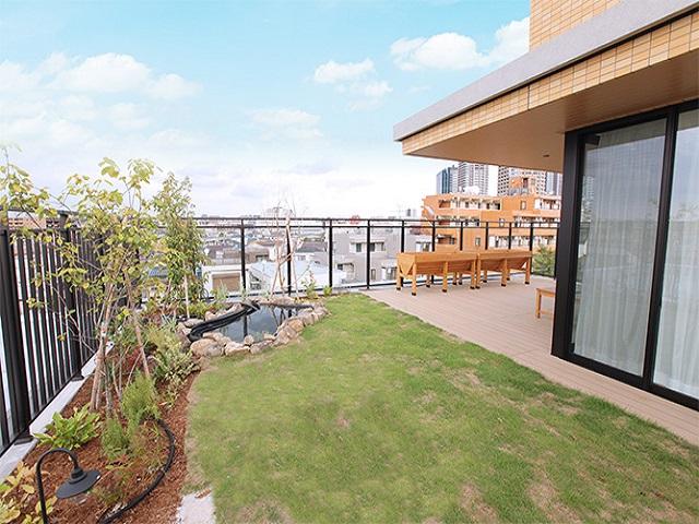 季節の花や野菜を植えたりと、ご入居者同士の憩いの場となっている広々としたスペースです。