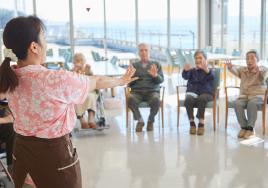 パンづくりや活花などのサークル活動に加えて、カラオケや介護予防体操、頭も身体も元気になるレクリエーションを日々行っています。