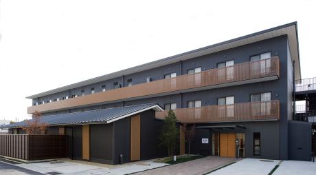 【特徴1】閑静な住宅街にある、安らぎに満ちた邸宅“里安邸”。ゆったりとした空間の中で、ご自分らしい暮らしをサポートしてまいります。