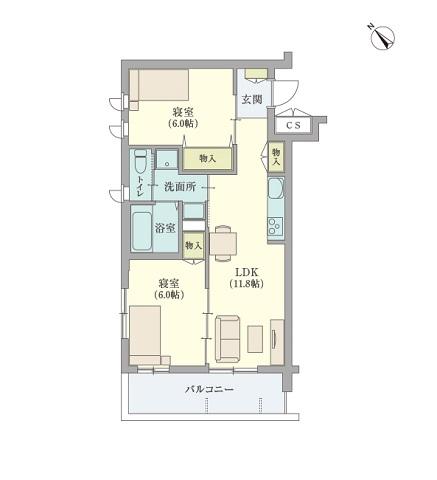 敷金(賃料2か月分)は退室後返金致します。 *退去時のルームクリーニング費用は借主負担となり、敷金から精算されます。1LDK/ 55,000円~ 2LDK/ 66,000円~ |