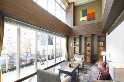 また、人や社会との関わりを持ち続けていただけるよう、合築の保育園との行き来が可能な交流カフェや交流ガーデンなど、顔を出したくなるような共有スペースを設けております。